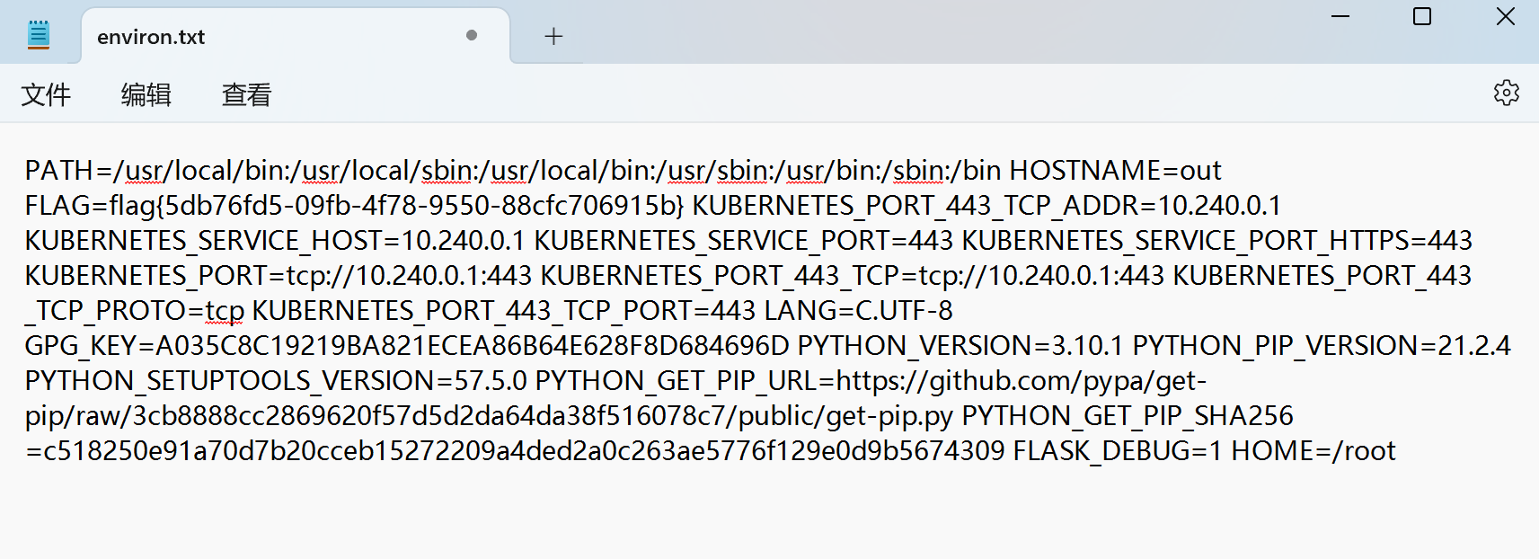 修改后访问/static/proc/1/environ,但是访问后下载了文件
