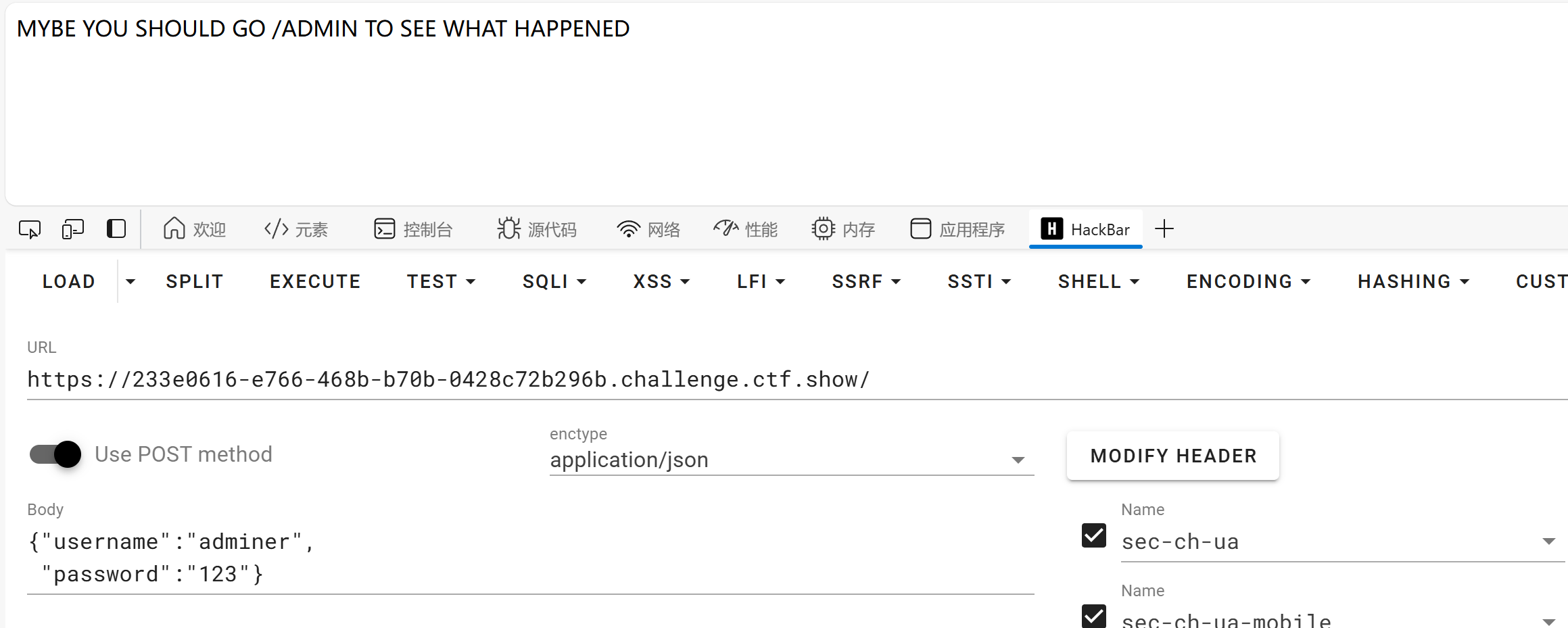 使用的是hackbar,全部进行unicodezaixuanze application/json会发送失败,这里选择部分编码